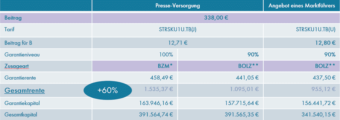 Das bedeutet für Sie: Im Vergleich zu anderen Anbietern erhalten Sie eine bis zu 60 % höhere Anfangsrente!